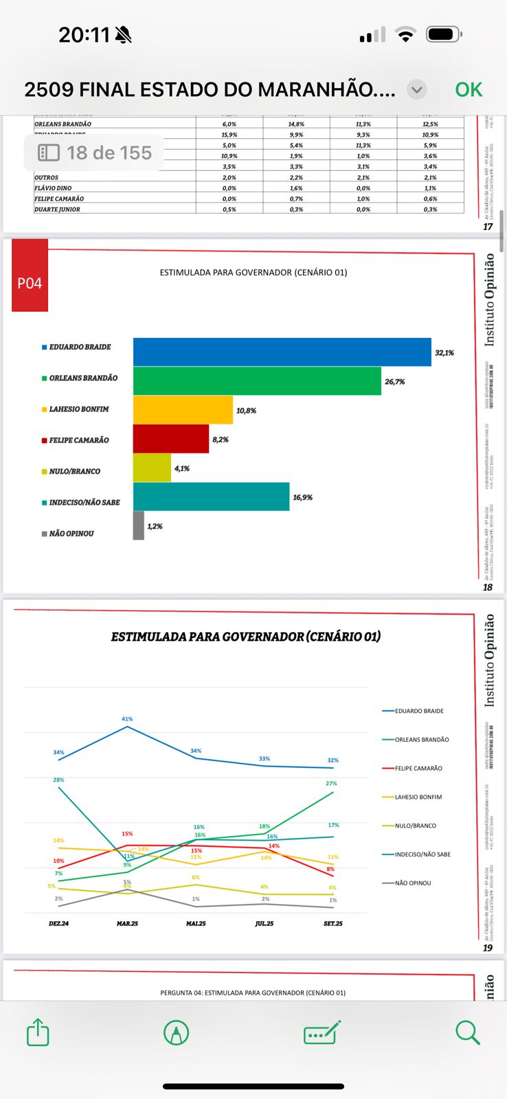 Considerando que o prefeito da capital maranhense já está em segundo mandato e é mais conhecido do eleitor, o resultado mostra um desempenho destacável de Orleans.