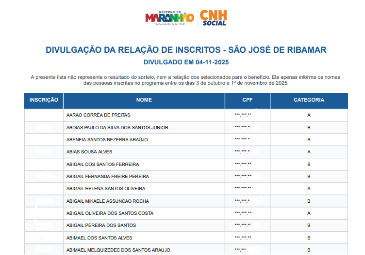 A relação completa dos inscritos pode ser consultada no site oficial do Detran-MA: www.detran.ma.gov.br.