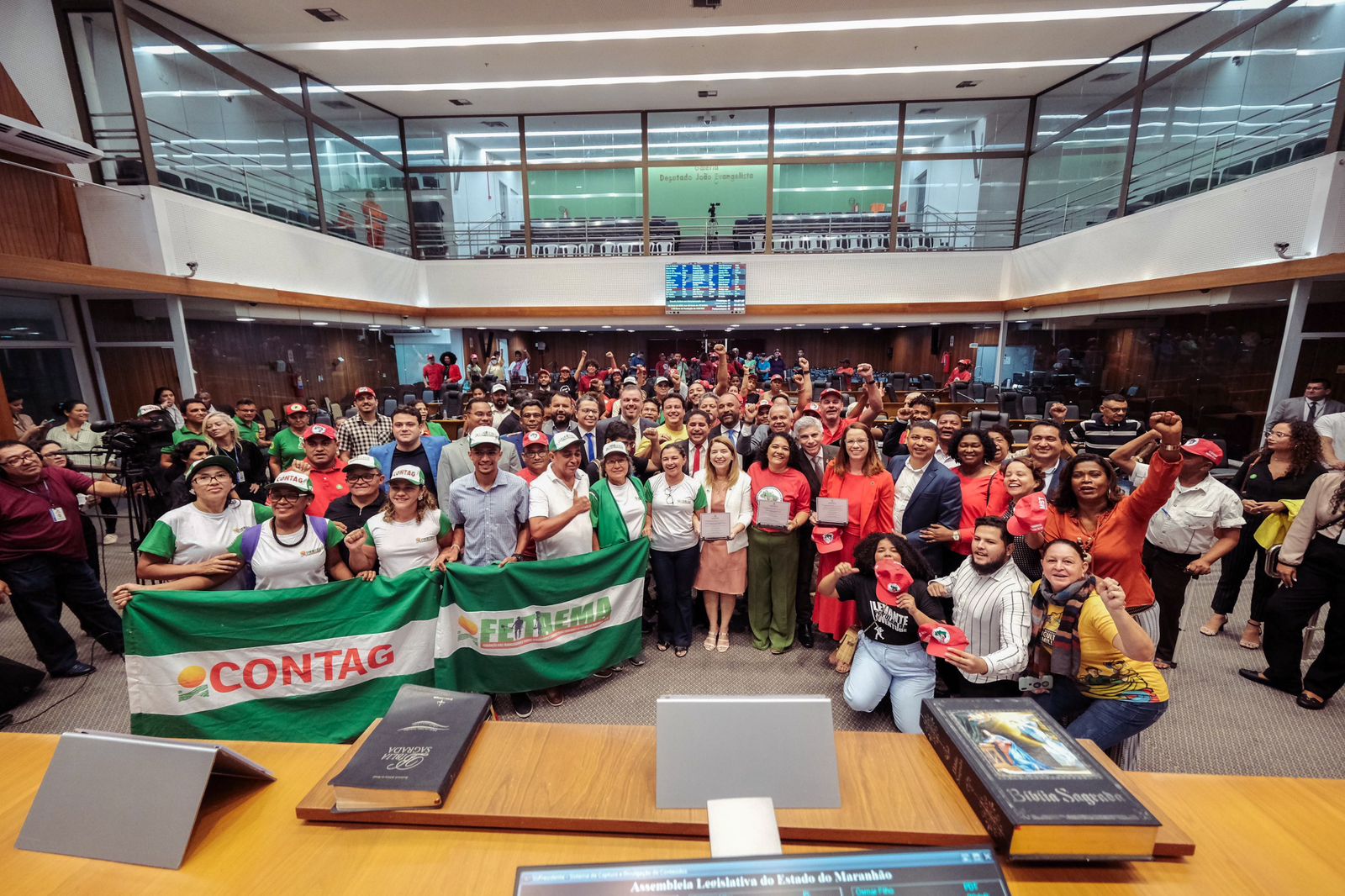 A Assembleia Legislativa do Maranhão realizou, nesta terça-feira (23), sessão solene em homenagem aos 40 anos do Movimento dos Trabalhadores Rurais Sem Terra (MST), 52 anos da Federação dos Trabalhadores Rurais Agricultores e Agricultoras do Estado do Maranhão (Fetaema) e 60 anos da Confederação Nacional dos Trabalhadores Rurais Agricultores e Agricultoras Familiares (Contag). A solenidade aconteceu no Plenário Nagib Haickel do Palácio Manuel Beckman.