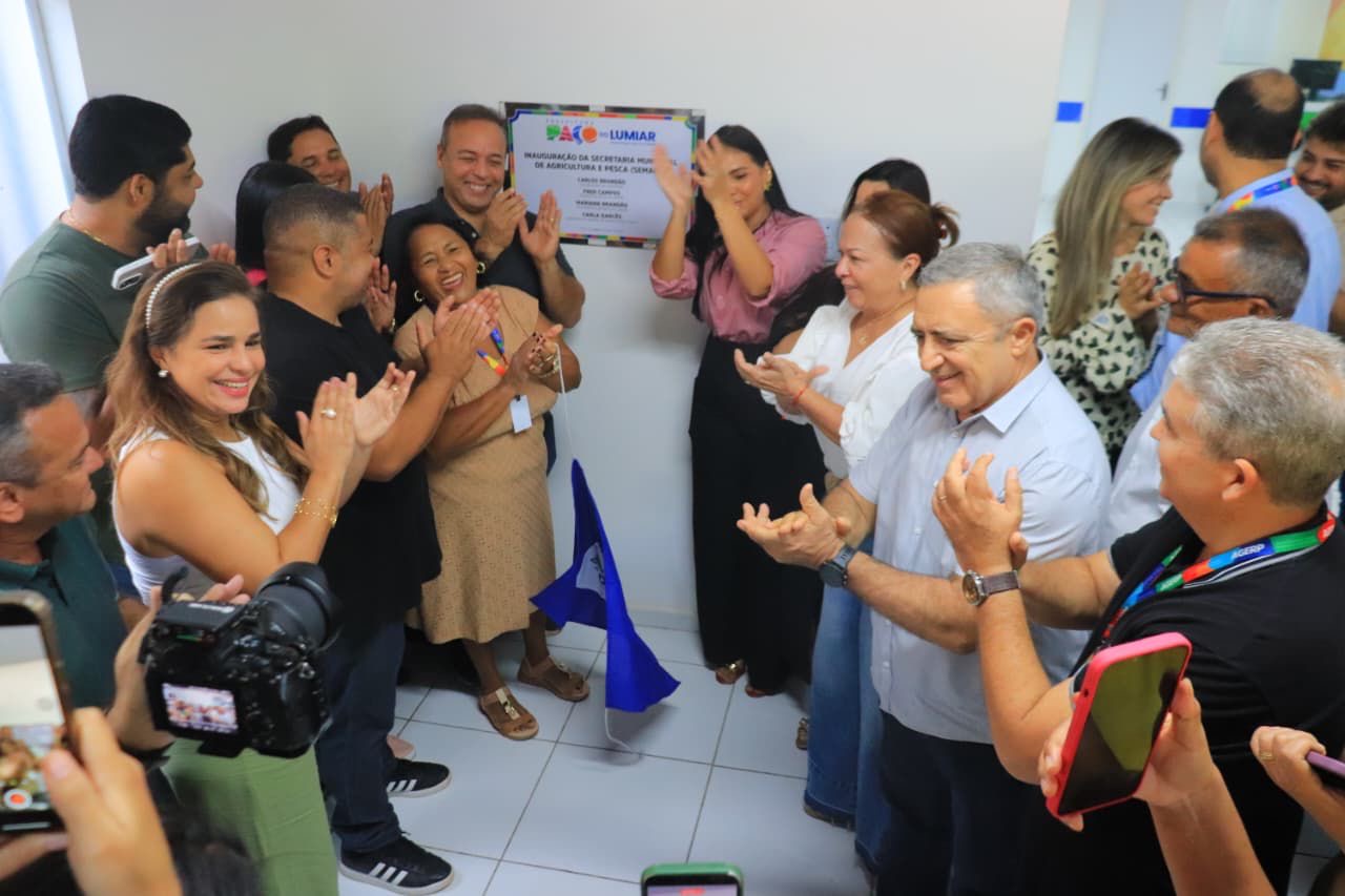 O Prefeito Fred Campos inaugurou nesta quarta-feira (15) o novo prédio da Secretaria Municipal de Agricultura e Pesca (Semagri), em Paço do Lumiar. A solenidade contou com a presença da primeira-dama Maedja Campos, da secretária de Agricultura e Pesca Carla Garcês, do diretor da AGERP Sandro Montenegro, do prefeito de Paulo Ramos Adailson Machado, além de secretários municipais, vereadores e membros da comunidade.
