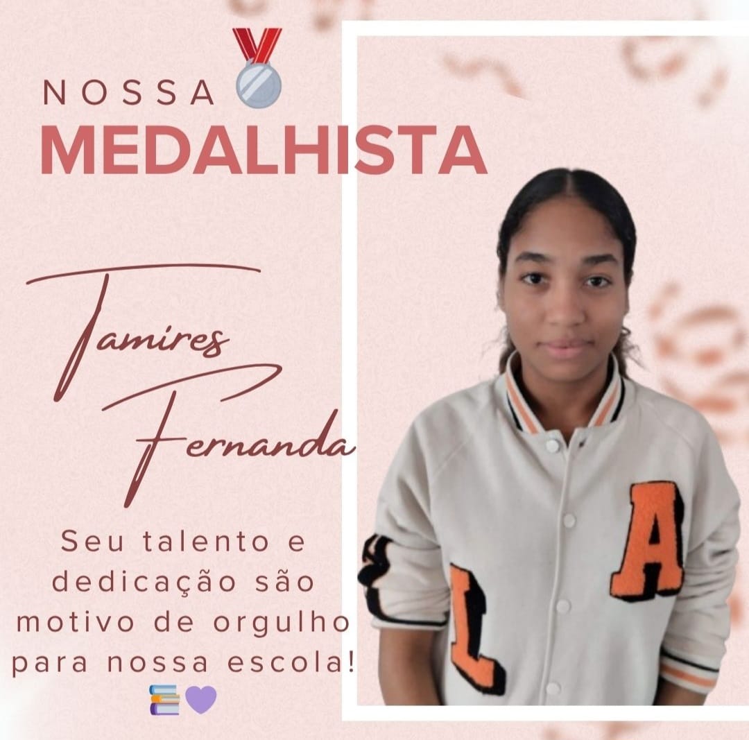 A aluna Tamires Fernanda dos Santos Reis, do 3º ano do Ensino Médio, conquistou a medalha de prata na competição, que reuniu estudantes de diversas regiões do país.